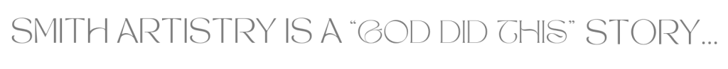 Smith Artistry is a “God did this” story. The only one true God that guides me every step of the way. The One who hears my prayer for “vissies en broodjies” when I stress about not having enough flowers for a set up. The One who hold me steady when climbing up and down multiple ladders when doing an installation. The One who  ensured I arrive safely to every event set up. The One who gives me rest when there is only 3 hours of sleep. “I will personally go with you and I will give you rest – and everything will be fine for you.” Ex. 33:14